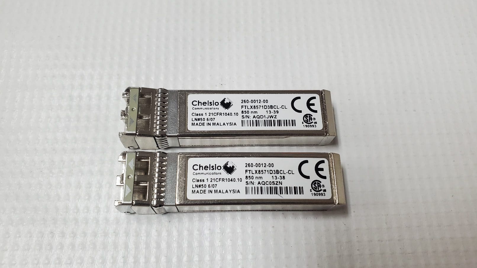 FTLX8571D3BCL-CL Lot of 2 Chelsio 260-0012-00 10Gb SFP Transceivers